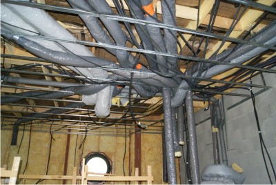 Ci-dessus, à gauche : Les tuyaux VMC double flux 20-07-2011, à droite: pose des huisseries 20-07-2011(Ets AFC).