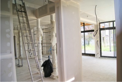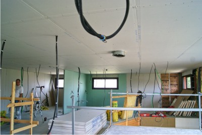 Ci-dessus : Pose du placo (Ets TradiPlatre) et de l'électricité(Ets Azelec). 27-07-2011.