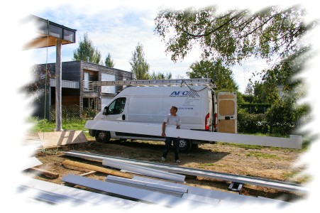 En haut à gauche : Notre bandeur Johnny, en haut à droite : AFC, menuiserie et bardage haute qualité.