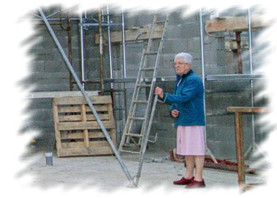 Alors, vous avez trouvé l'intrus . . . Bravo! La petite dame en chaussures rouges, jupe rose et veste bleue n'est pas du chantier !