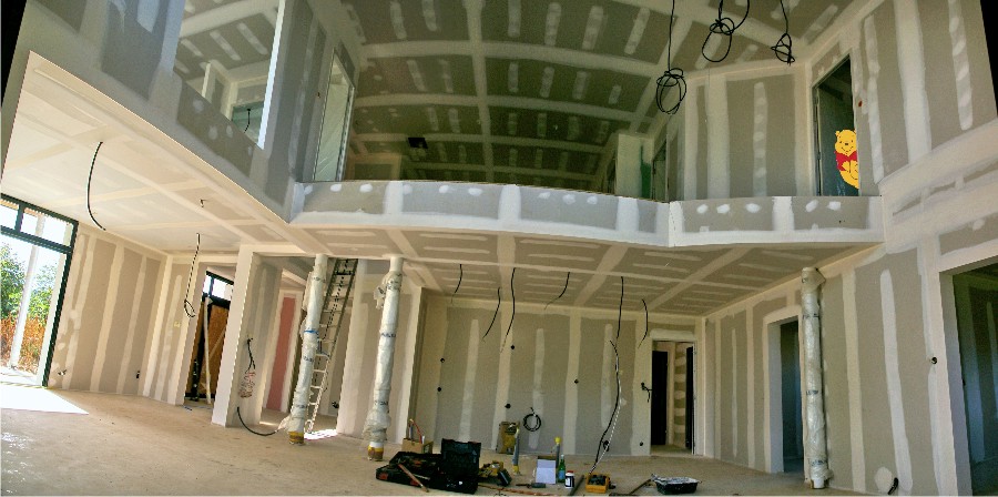Ci-dessus : Vue à partir de la terrase sud/est, la mezzanine en haut en face, la cuisine en dessous, la chambre parent en haut à gauche,