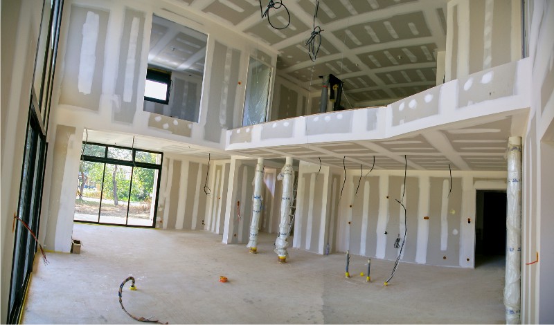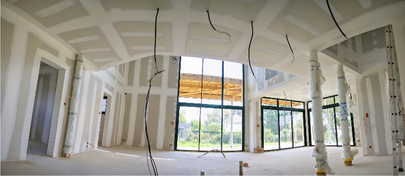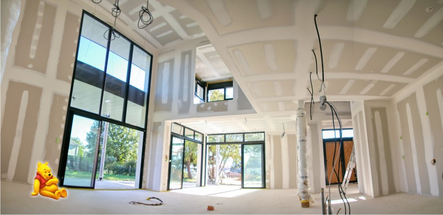 Le chauffage est intégré au sol sur un système de pompe à chaleur air/eau